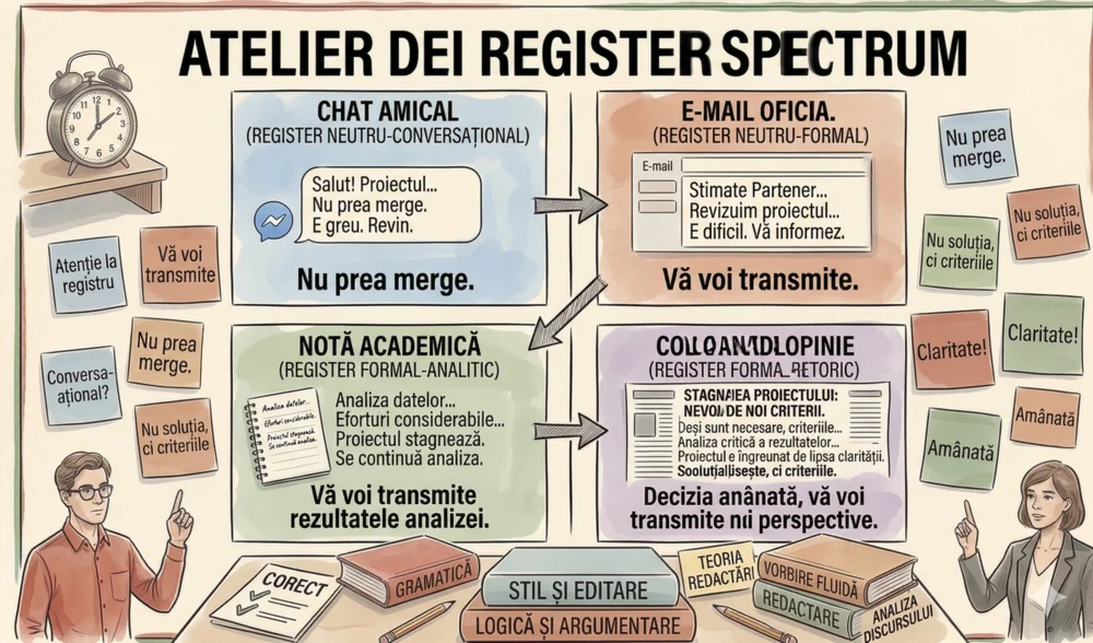 Formal and personal correspondence with register control